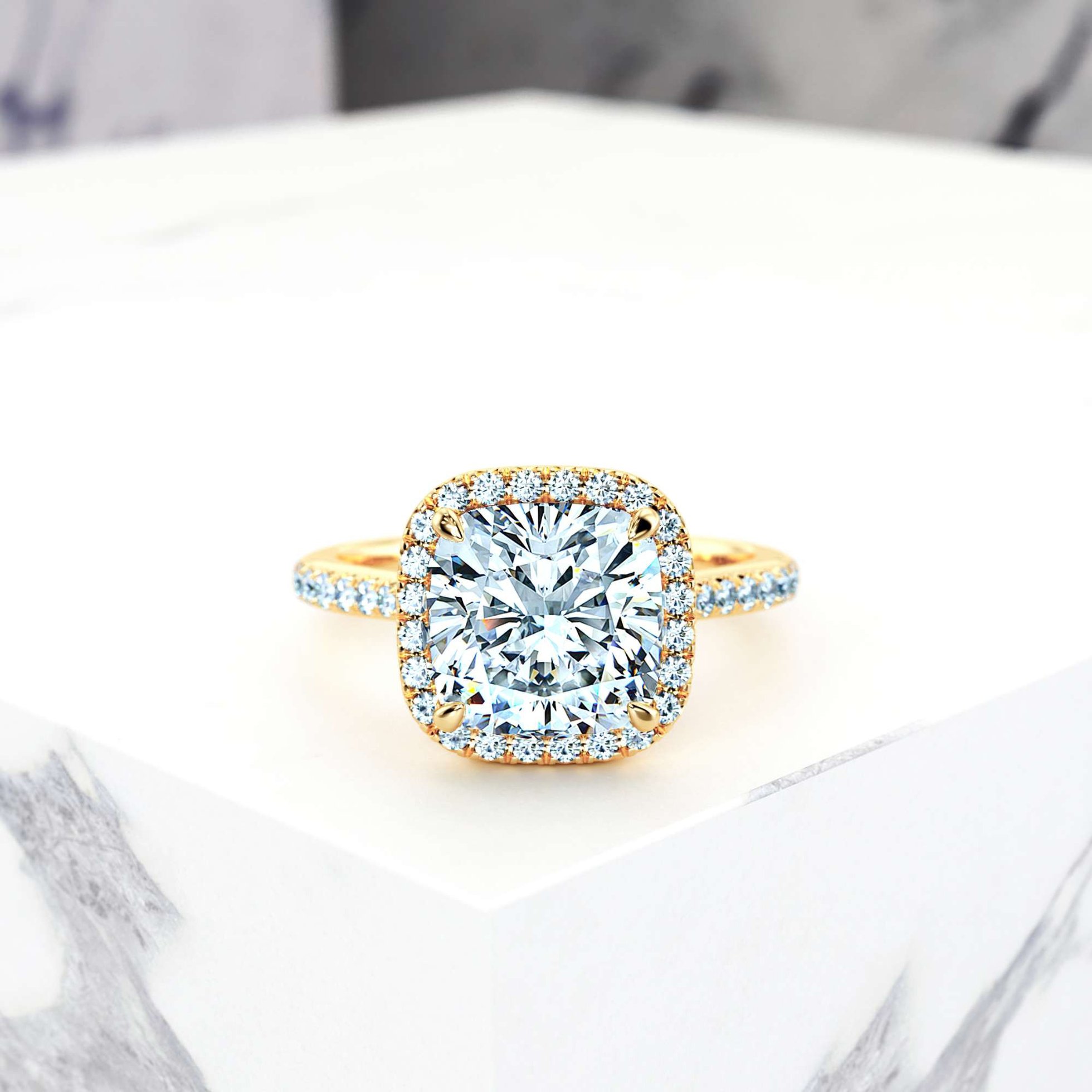 Der Elena Verlobungsring von ELIZZA™ ist eine Hommage an zeitlose Eleganz. Der Square Cushion Diamant ist ein besonderes Highlight, das durch seine ausgefallene Form besticht. Der Diamant wird von einem feinen Halo aus kleinen Diamanten umgeben, die ihm noch mehr Glanz verleihen. Der geschmeidige Zulauf zum Hauptstein rundet das elegante Design dieses Rings ab. Überraschen Sie Ihre Auserwählte mit einem Antrag, bei dem Sie diesen Verlobungsring präsentieren. Ein Moment voller Romantik, den Sie beide niemals vergessen werden.