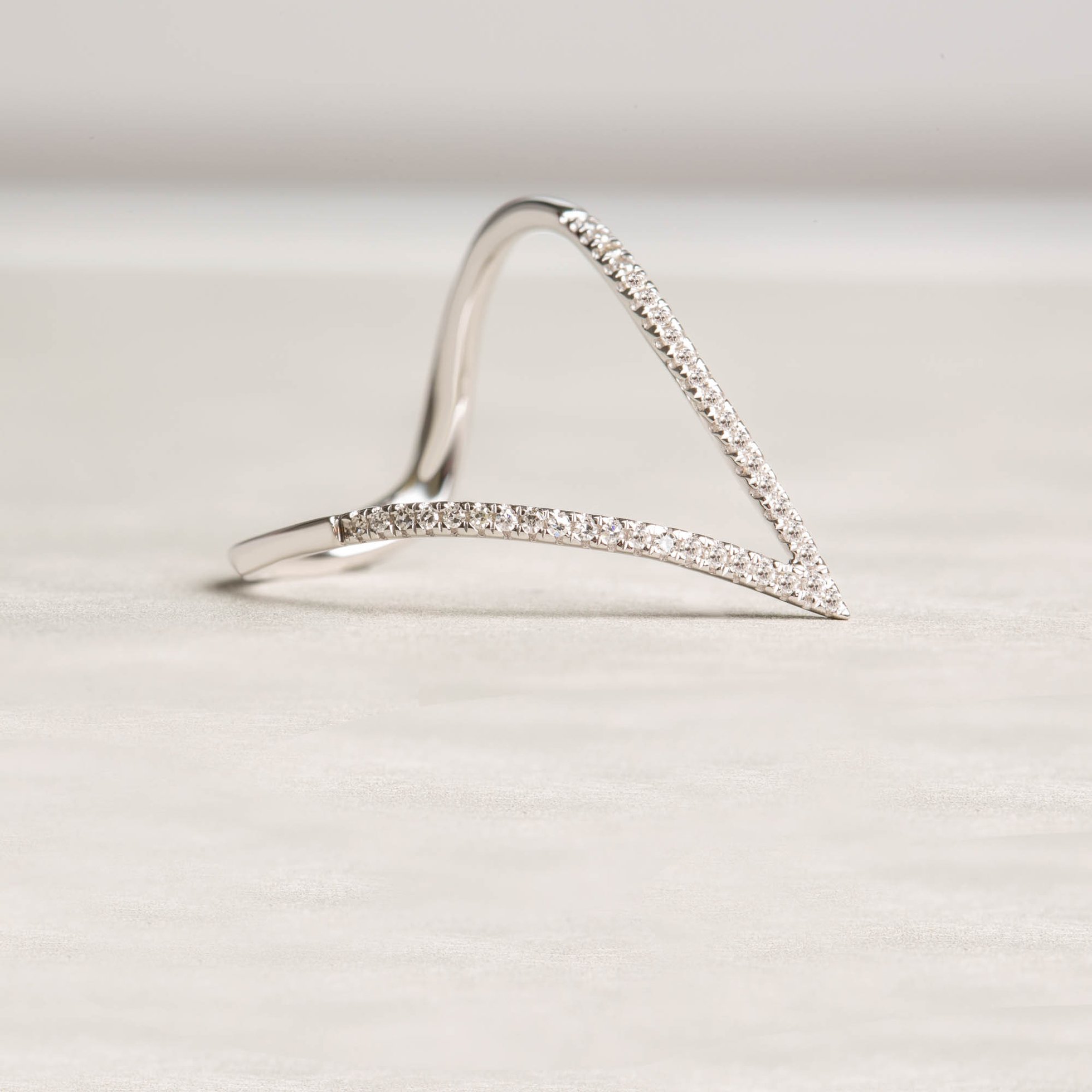 Dieser einzigartige Diamantring besticht durch seine aussergewöhnliche Form und Feinheit. Wie kein anderer Ring läuft er in einer Spitze zu, schmiegt sich so noch weiter an deinen Finger. Das Funkeln der 38 Pavé-Diamanten und seine auffalende Form machen den Ring eindeutig zu einem Highlight in Ihrem Schmuckrepertoire.