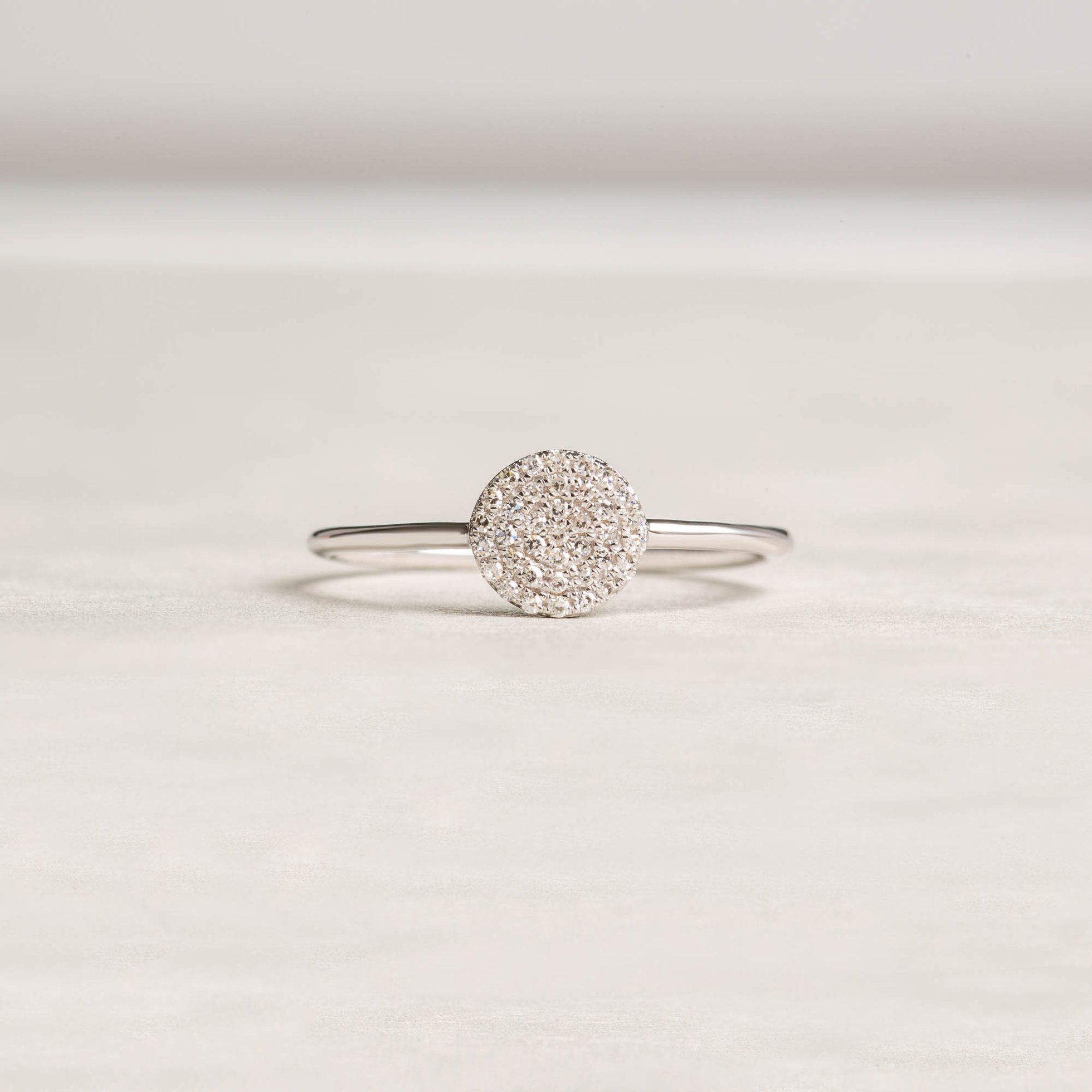 Dezent und minimalistisch: Der Vollmond Diamantring. 37 Pavé-Diamanten zieren den Vollmond und lassen ihn im Mondlicht (oder in der Sonne) sanft an deiner Hand glitzern.