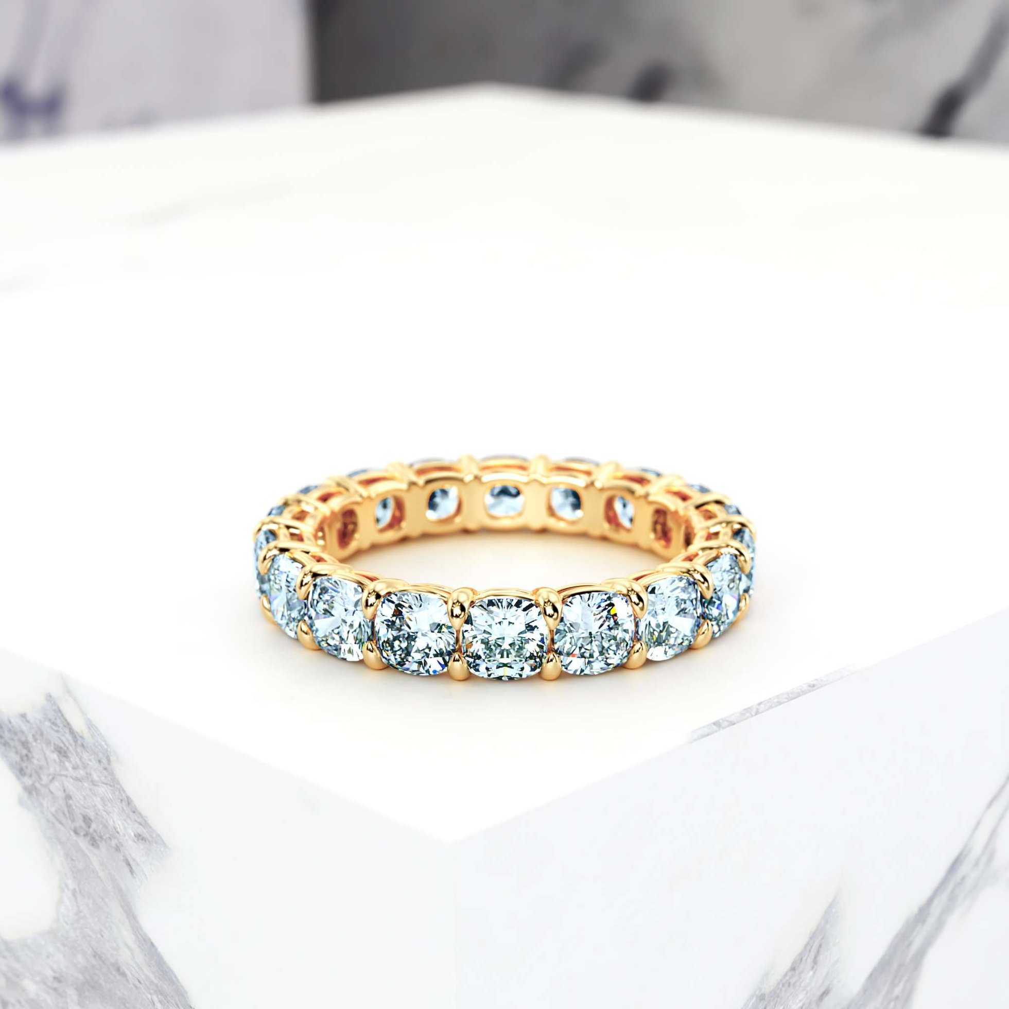 Dieser Eternity Ehering ist ein atemberaubendes Symbol für ewige Liebe und Hingabe. Das durchgehende Band ist mit quadratischen, kissenförmig geschliffenen Diamanten besetzt, die in eleganten Körben gefasst sind und von Krallenzacken sicher gehalten werden. Jeder Diamant wurde sorgfältig aufgrund seiner aussergewöhnlichen Brillanz, seines Feuers und seines Funkelns ausgewählt und fachmännisch gefasst, um maximale Brillanz und Haltbarkeit zu gewährleisten.