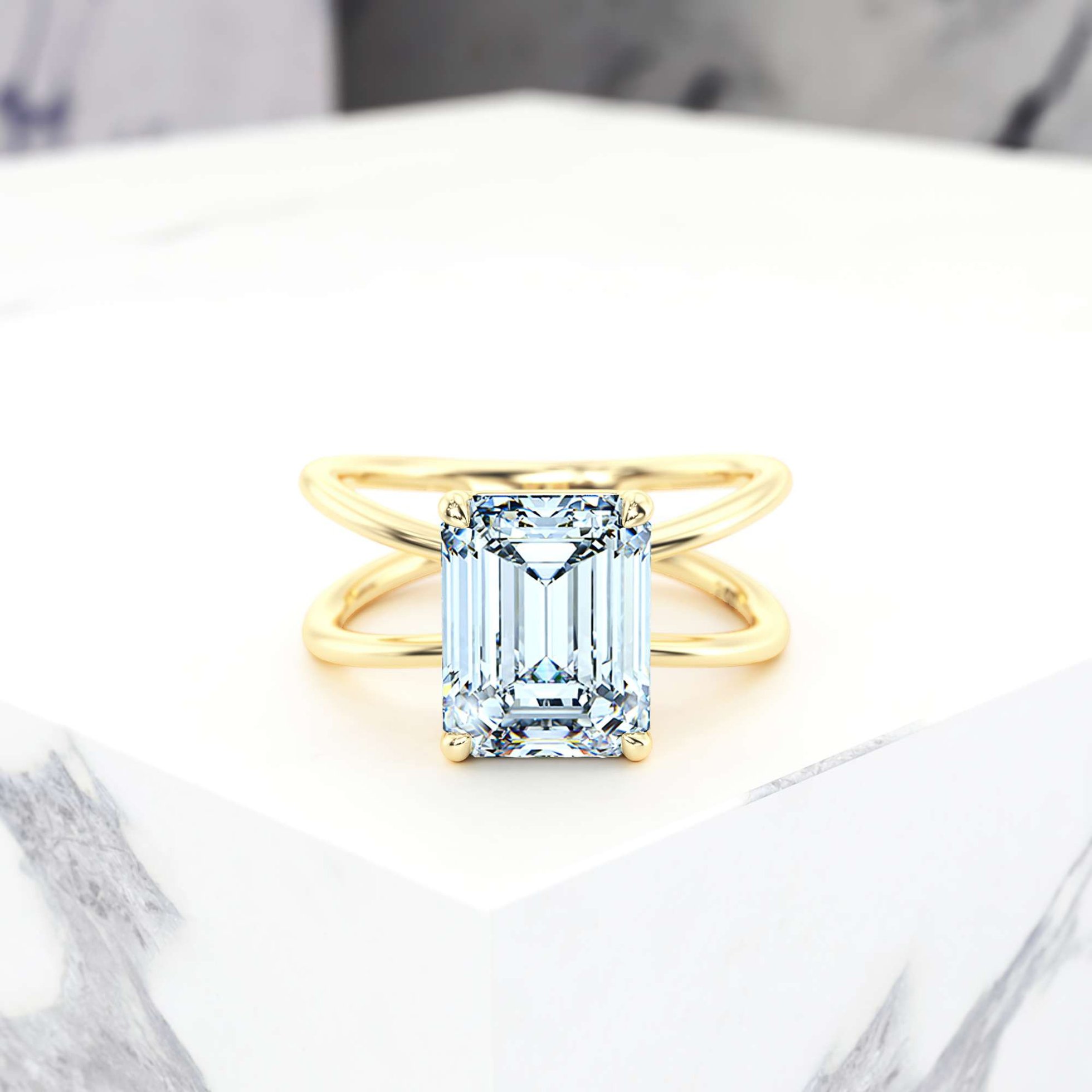 Crafted with precision and attention to detail, the Eve Emerald Solitaire Engagement Ring is more than a ring; it's a reflection of individuality and a promise of shared experiences. Let the captivating beauty of the emerald diamond and the artistry of the split shank become a symbol of your unique love story—a tale of unity, divergence, and the beauty of coming together.