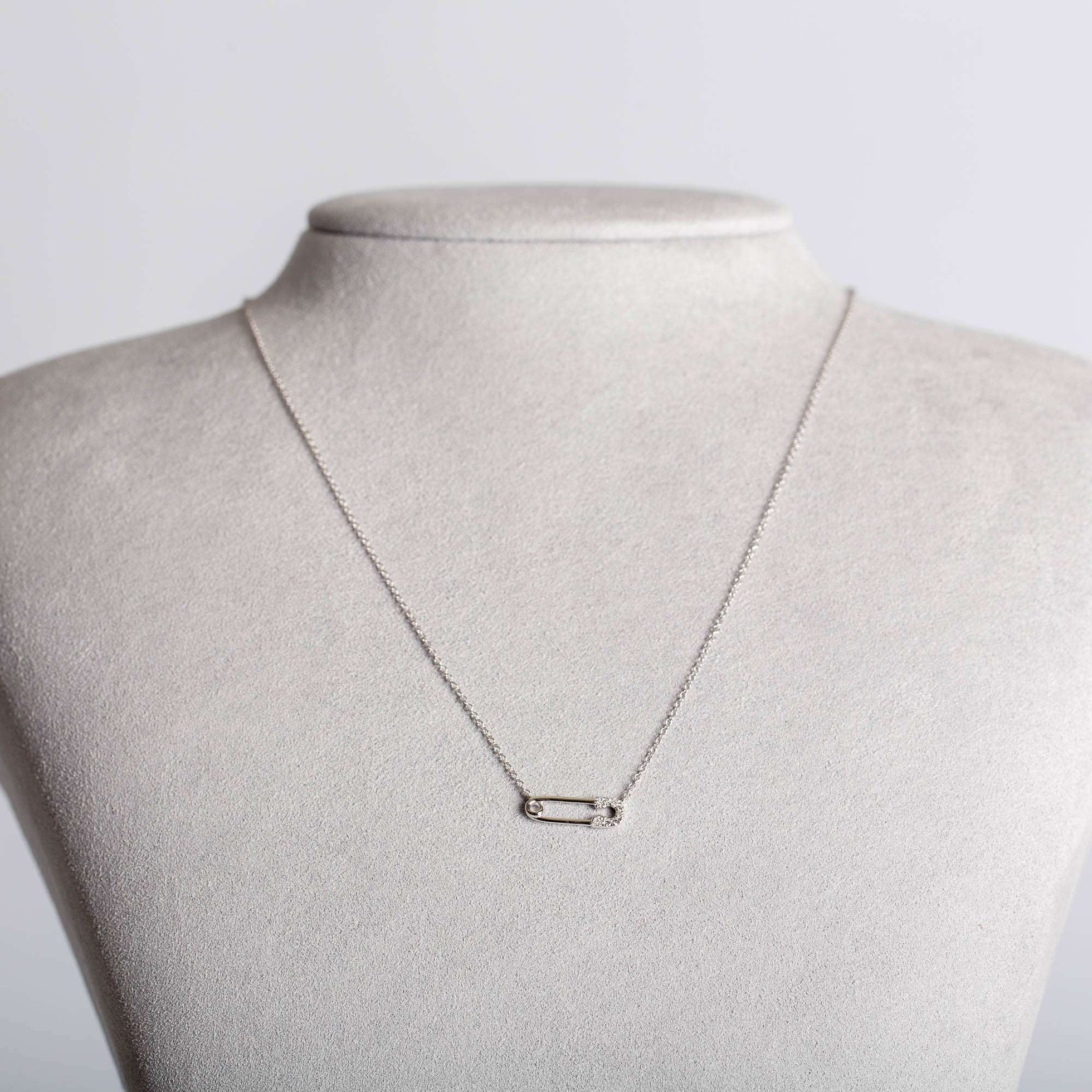 Un collier de diamants unique et élégant, avec une épingle de sûreté comme pièce maîtresse du design. L'épingle de sûreté est fabriquée dans un métal précieux étincelant et sertie de diamants étincelants, créant un look chic et avant-gardiste. Les diamants sont disposés selon un motif accrocheur, qui capte la lumière et ajoute une touche de glamour au design. Le motif de l'épingle à nourrice est un clin d'œil à la tendance punk rock, ce qui rend ce collier parfait pour quiconque souhaite ajouter une touche de rébellion à sa collection de bijoux. Ce collier est polyvalent et peut être porté aussi bien avec des tenues décontractées que formelles, ce qui en fait un must-have pour tous ceux qui apprécient le design moderne et innovant des bijoux.