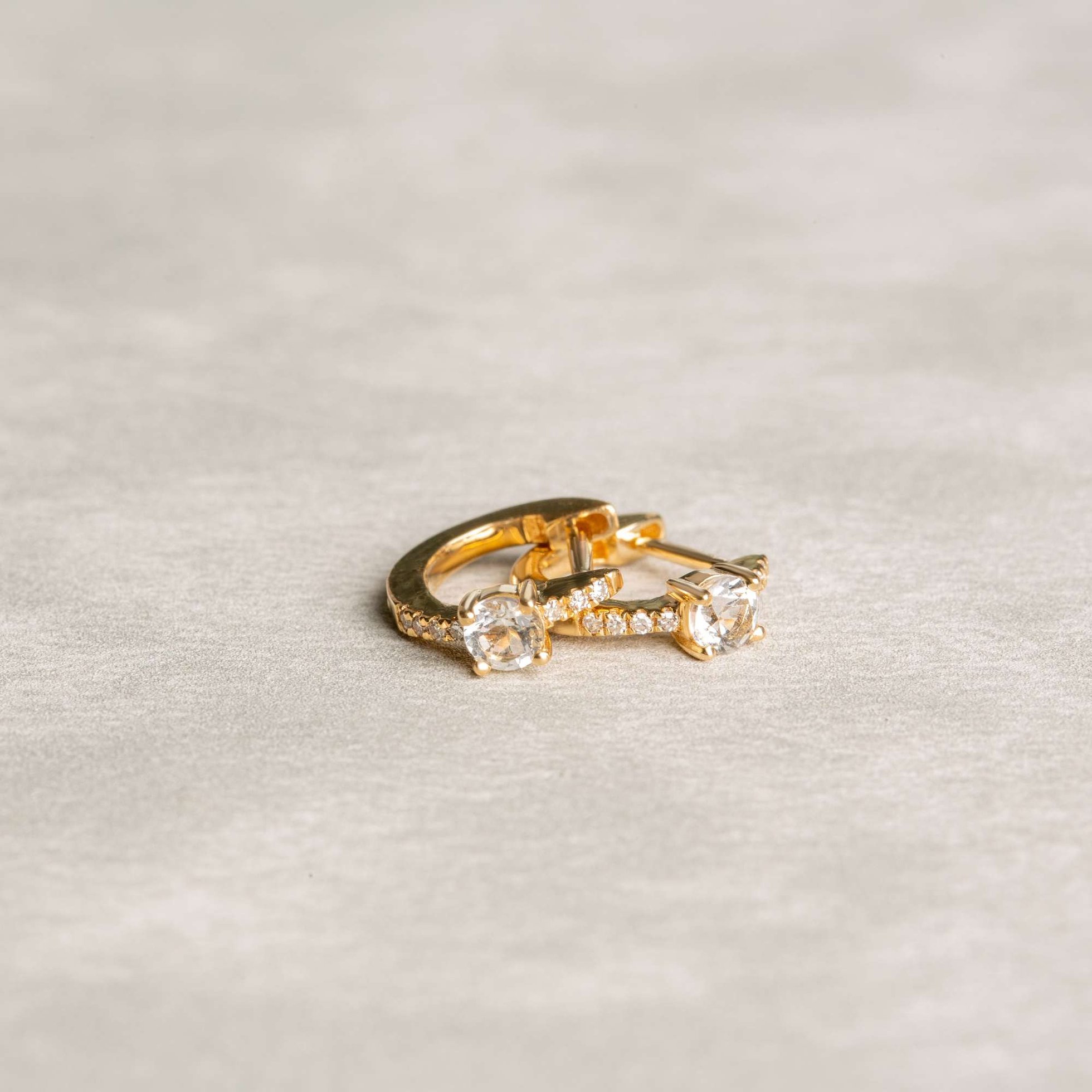 Poids total en carats: Environ 0.453 carat (2 topazes blanches et 14 diamants pavés)